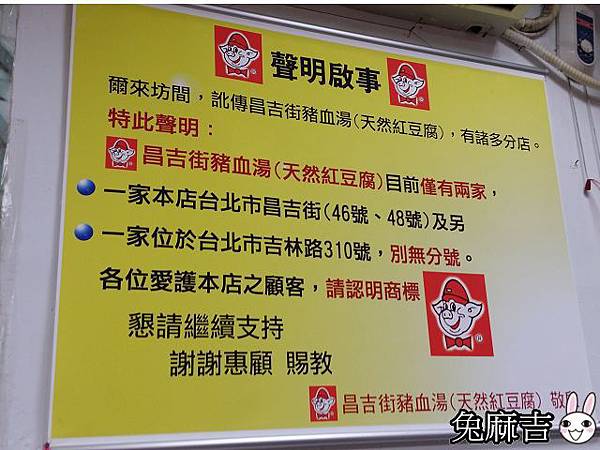 另外就是看起來像是豬員外的豬頭做標示,另外其他家的豬血湯,不會強調是天然紅豆腐,只會強調他們是昌吉豬血湯,所以很好認的。