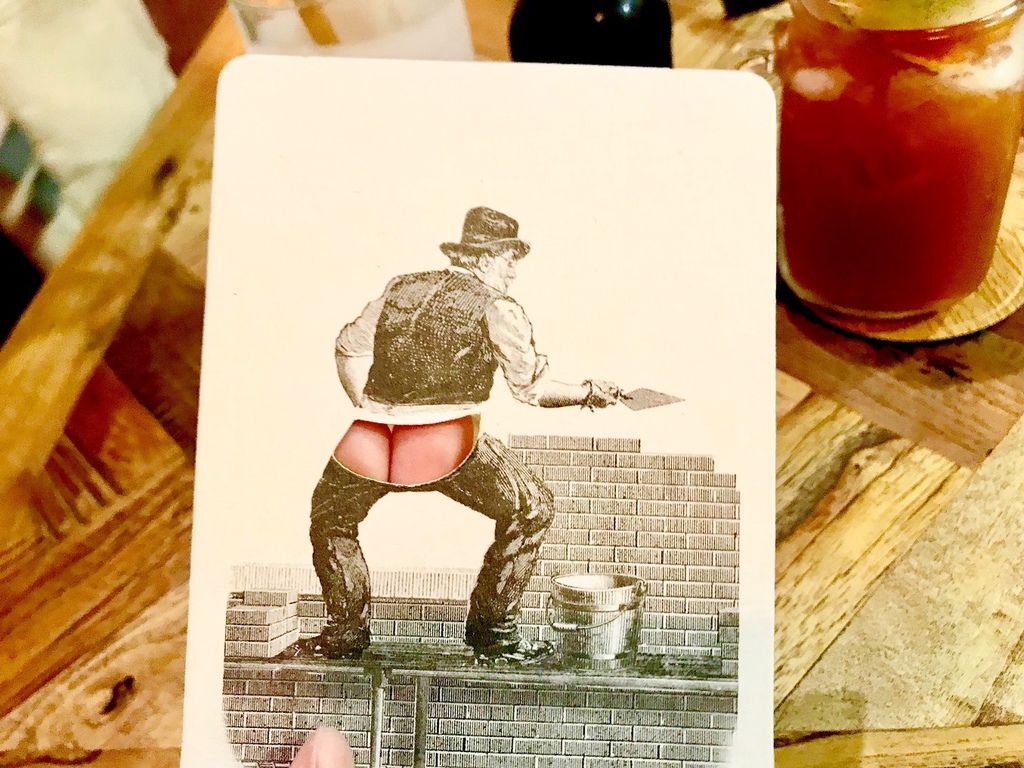 把兩根手指頭放在杯墊卡中,就會變成屁股了,